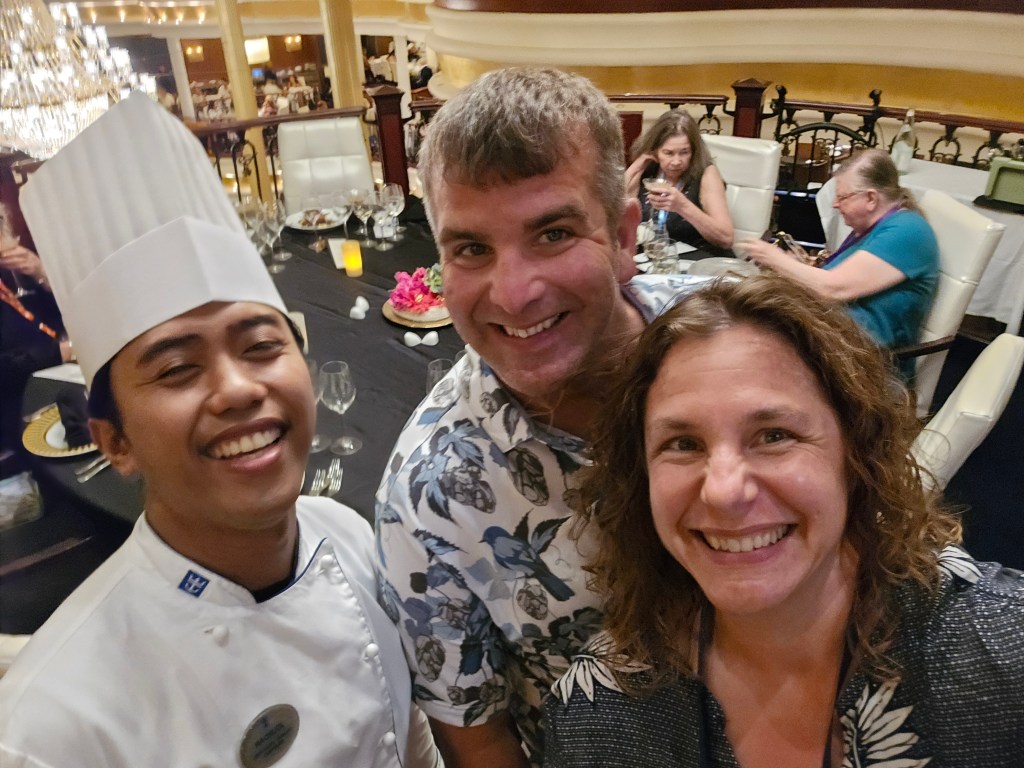 Our large group ate together in the dining room each night – allowing us to connect and share about our day if we hadn’t been together. It was a great inter-generational connection point for all of us. We sat at the same table with the same wait staff each night – by the end of the cruise, we felt like old friends.